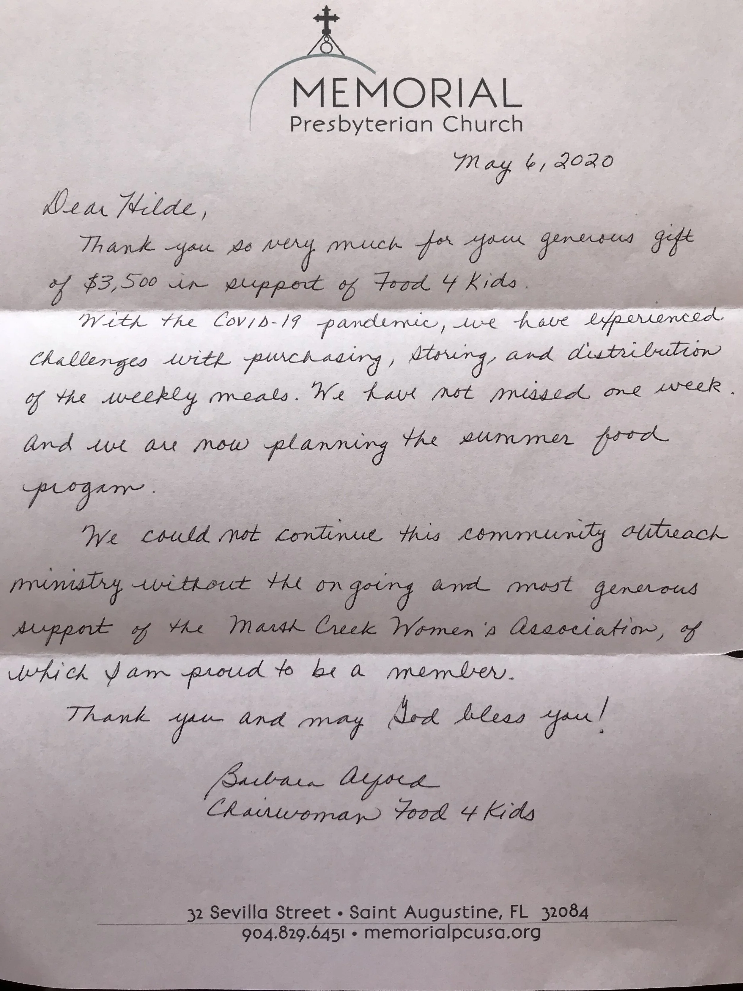 The MCWA donation was certainly appreciated and well used to help fund the summer food program.