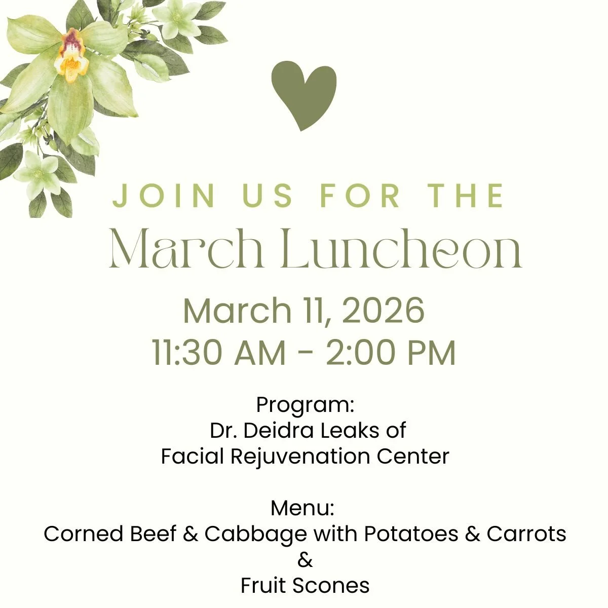 Dietary Needs: Members with special dietary concerns should contact the club 10 days prior to the luncheon.