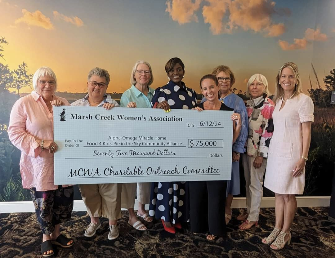 The Marsh Creek Women’s Association’s Annual Charity Gala raised $75,000. Checks were presented at the June Luncheon at Marsh Creek Country Club to Alpha-Omega Miracle Home, Food 4 Kids and Pie in the Sky.